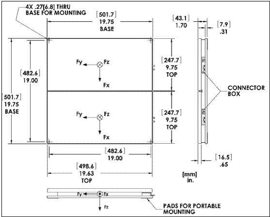 Dual-top AccuSway 包括2个共享一个单一基座的独立测力传感器。这种结构通过对每只脚下的三种力(Fx, Fy, Fz) 和三种时刻(Mx, My, Mz)提供持续的测量,使得每只脚在平衡研究的过程中进行隔离。